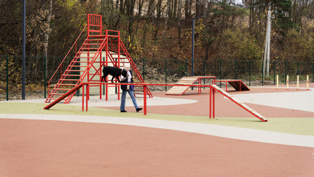 1. Построена площадка с бесшовным покрытием, безопасным для лап питомцев.