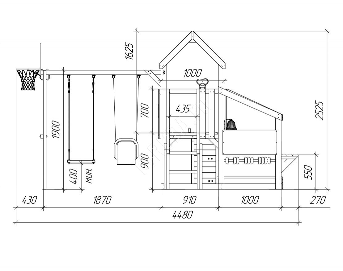 Площадка Борге 10 обладает довольно широким функционалом (который по желанию можно легко расширить). Детская площадка предназначена для дачи, коттеджа.