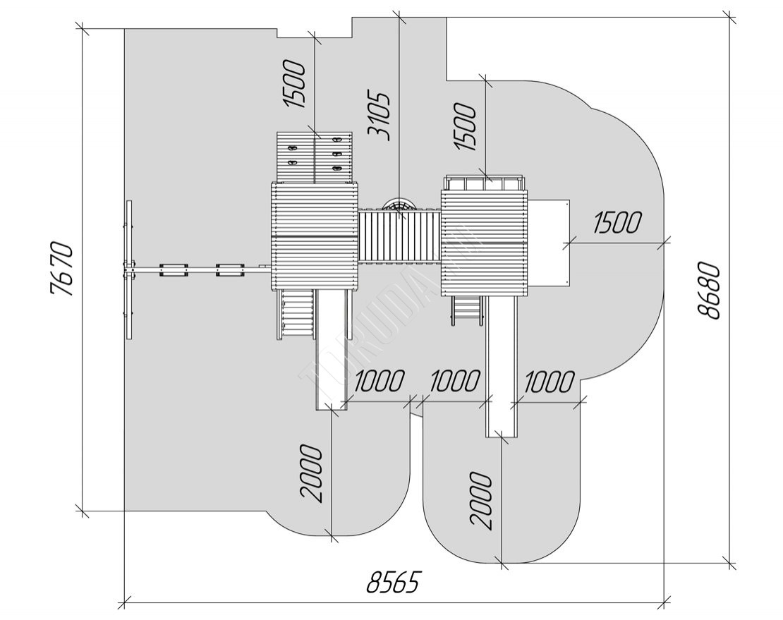 Это просторный и многофункциональный игровой комплекс, который станет центром активных развлечений для детей. Он сочетает в себе игровые, спортивные и развивающие элементы, обеспечивая интересный и безопасный досуг на свежем воздухе.