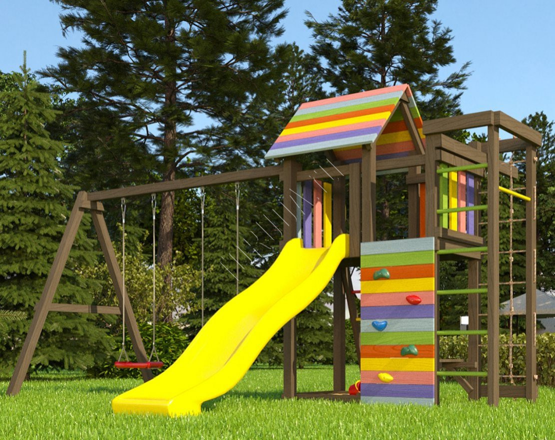 - Это универсальное решение для активного досуга и позитивного настроения непосед с трех лет. Комплекс безопасен – конструкция, качество древесины и подвижных элементов соответствуют ГОСТ. Основным материалом является экологичный клееный брус, балки которого отшлифованы и имеют закругленные края.