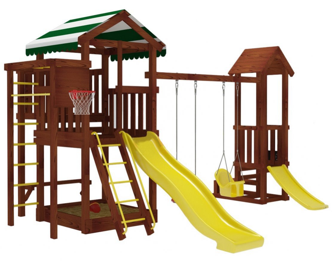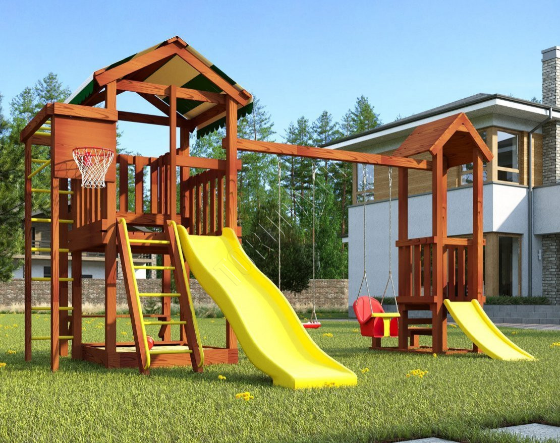 Это просторный и многофункциональный детский игровой комплекс, который подарит ребёнку увлекательные игры и физическое развитие. Благодаря разнообразным спортивным и игровым элементам, дети смогут весело проводить время на свежем воздухе, улучшая координацию, силу и ловкость.