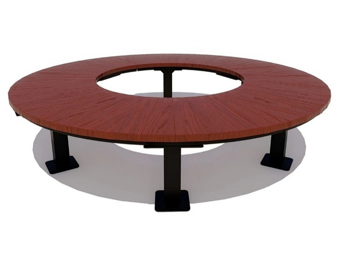 «Смоленск» — необычная скамейка из натурального дерева с эффектной тонировкой. Модель сочетает оригинальный дизайн с практичностью и вместительностью. Опоры конструкции стальные, окрашены методом порошкового напыления. При необходимости их можно зафиксировать на грунте анкерными болтами. Сиденье нестандартной круговой формы составлено из брусьев. Ширина его составляет 500 мм, что способствует комфорту сидящих.