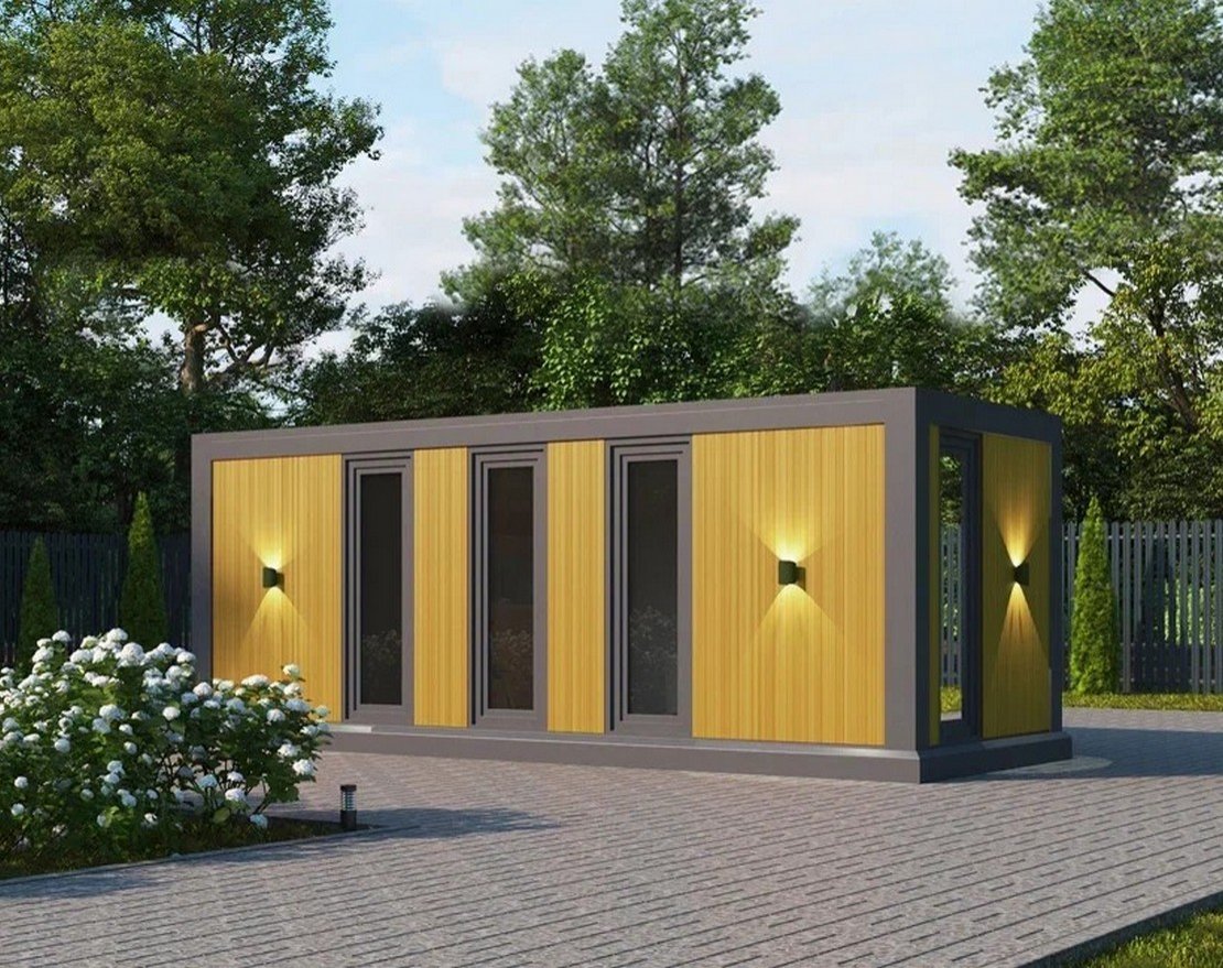 Уютный модульный дом для глэмпинга площадью 14,74 м² – это идеальное пространство для романтического отдыха вдвоем. Компактный модуль превращается в уютное пространство, где можно насладиться уединением и близостью к природе, не жертвуя комфортом современной жизни. Отсутствие межкомнатных несущих стен позволяет выполнить любую планировку внутреннего пространства. Возможна адаптация материалов и планировки под ваши потребности.